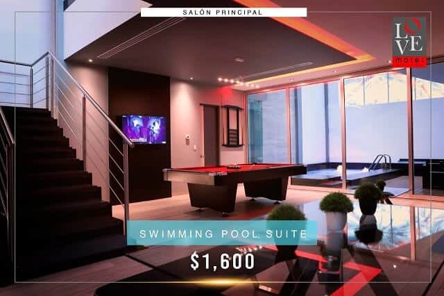 La suite con alberca de Love Motel es una de las más lujosas, limpias y mejor recomendadas.