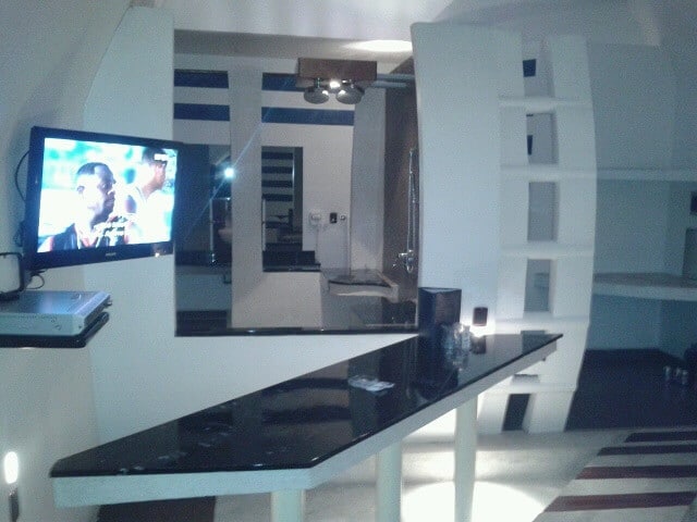 La ducha no tiene puerta, está como que integrada al cuarto y el sanitario está en un cuartito aparte. El lugar está limpio, la cama amplia y tiene un espejo opaco y redondo al frente.
