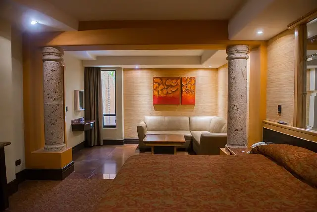 Como el nombre lo dice esta habitación de Motel Mansión cuenta con un jacuzzi además de todo lo que tiene la habitación sencilla. Igualmente de amplia, esta suite cuenta con un jacuzzi grande de hidromasaje con buen espacio para 2 personas y suficiente profundidad, sin duda uno de nuestro jacuzzis favoritos.